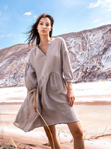 Платье женское свободного силуэта в стиле «боххо», вырез горловины округлый с декоративной трикотажной резинкой. Изделие без рукава со спущенной линией плеча и отделкой по низу. В боковых швах карманы и фигурные разрезы по низу. Декором является принт по полочке. По спинке – имитация планки с пуговицами. Платье без застежки. Длина платья 122 см.
