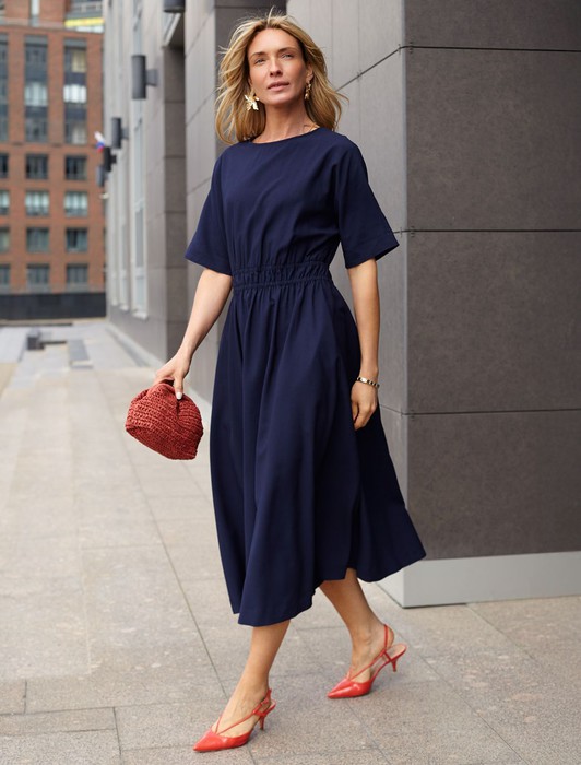 Платье из плотного лиоцелла с поясом на резинке