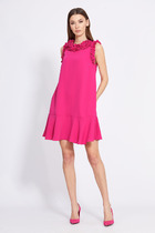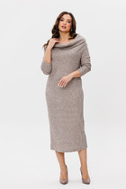 Платье из комфортного трикотажного полотна меланж прямого  силуэта. Горловина оформлена воротником-хомут. Линия проймы спущена. Рукав длинный.