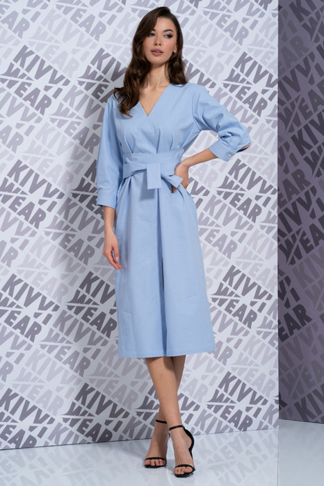 Это платье - находка для тех, кто любит джинсовую моду и оригинальные детали. Оно выполнено из джинса Тиффани, который отличается своим разнообразными  оттенками. Платье имеет V-образный вырез, который подчеркивает грудь и шею. Разрез спереди придает платью динамику и сексуальность. Пояс на талии акцентирует фигуру и создает женственный силуэт. Длинный рукав придает платью уют и тепло. Платье можно носить как с кроссовками, так и с туфлями. Это платье - идеальное решение для тех, кто хочет выглядеть стильно и комфортно.