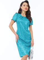 Вырез горловины платья «под горло», с втачной стойкой. Перед платья с нагрудными вытачками, втачной планкой, 2-мя накладными карманами. Спинка цельная, в боковых швах обработаны разрезы. Рукава втачные одношовные длинные, с притачными манжетами.