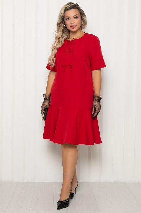 Платье А - силуэта с удлиненным рукавом и воланом по низу.