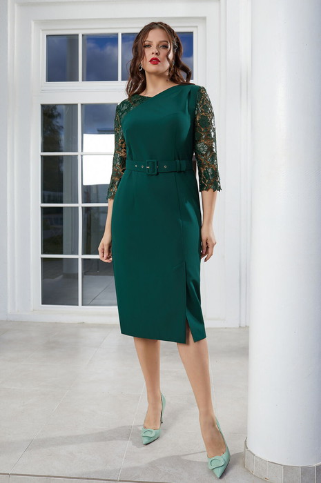 Дизайнерское  платье необычного кроя  с мягкими складками по лифу дополненное  съемным поясом  отлично впишется в ваш гардероб.  Пояс фабричного производства выполнен на заказ специально под данную модель: внешняя сторона тканевая, изнанка выполнена из экокожи. Полуприлегающий силуэт лаконичные формы и ассиметричный крой  по достоинству оценят ценители минимализма  и самые ярые модницы, платье отлично подойдет на все случае жизни и долгое время будет актуальным.  Платье полуприлегающего силуэта  отрезное по линии талии с фигурным  вырезом.  Лиф ассиметричный  с наложением  вышитого на коже ажура  оформлен нагрудными вертикальными вытачками от подреза. Юбка асимметричная со шлицей по переду. Застежка на потайную молнию в среднем шве спинки. Спинка со средним швом и талиевыми вытачками, застежка на потайную молнию в среднем шве. Рукава втачные выполнены из ажура вышитого на коже.