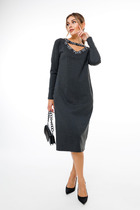 Платье-оверсайз выполнено из костюмной ткани. Рукав втачной на манжете с застёжкой на петлю и пуговицу. Воротник рубашечного кроя, планка на застёжку на петли и пуговицы, отрезная кокетка, карманы и клапаны, по боковым швам прорезные карманы. По спинке кокетка, глубокие складки от кокетки для удобства в носке.