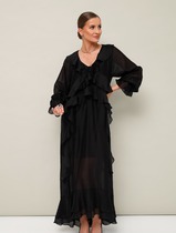 Уникальное вечернее платье, созданное для самых очаровательных леди. Оно состоит из двух частей: облегающего платья и накидки из сетки, расшитой пайетками. В сочетании с туфлями-лодочками этот наряд станет настоящим шедевром! Обратите внимание, что накидка не снимается.
