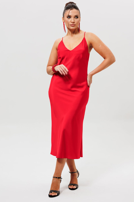 Элегантное атласное платье-комбинация — идеальный выбор для тех, кто ценит роскошь и комфорт в повседневной жизни. Модель выполнена из гладкого атласа, который придает образу блеск и шик. V-образный вырез подчеркивает линию шеи и создает эффект стройности. Платье доступно в трех цветах: яркий красный, нежный голубой и классический черный, что позволяет создавать разнообразные образы. Красный цвет станет отличным выбором для вечерних мероприятий, добавляя образу дерзости и энергии, голубой — идеален для создания свежего и романтичного образа, а черный — подойдет для офиса или деловых встреч, создавая строгий и элегантный образ. Гладкий атлас обеспечивает приятное ощущение на коже и добавляет образу роскоши. V-образный вырез и тонкие бретели делают платье модным и привлекательным. Подходит как для вечерних мероприятий, так и для повседневной носки. Комбинируйте с юбкой-миди и высокими каблуками для создания эффектного образа. Платье  отлично комбинируется с кружевной блузкой 1160бл, с белым жакетом 1048ж