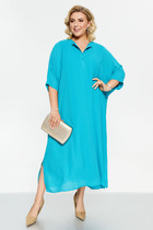 Новогоднее платье из интерлока пенье. Длинные рукава, общая длина чуть ниже середины бедра, карманы по бокам. Оформление в виде снежинок и геометрических узоров, треугольный вырез на груди. Размеры от 42 до 52. Внимание, данный товар не продается в розницу!