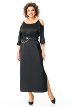 Платье макси комбинированное, двухцветное. Лиф фигурный по низу, выполнен из костюмной ткани. Вырез горловины полукруглый, по спинке затежка на молнию. Рукава втачные. Юбка на резинке, драпирующаяся, расширенного силуэта из шифона. На подкладке. Длина 134 см.
