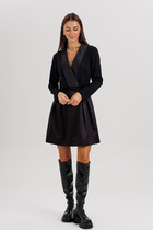 Это платье станет прекрасным выбором для вечерних мероприятий, деловых встреч или особых случаев, когда хочется быть уверенной в себе и выглядеть восхитительно. Выполненное из трикотажного полотна с изысканной фактурой и блеском люрекса, оно привлекает взгляд и подчеркивает вашу индивидуальность. Воротник и манжеты легко снимаются, превращая платье из нарядного вечернего в более повседневный вариант.
