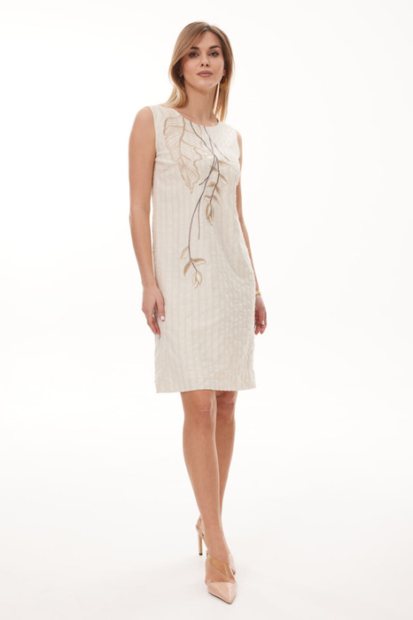 Платье прямого покроя, из льняного  полотна .Модель сочетает в себе женственность и удобство. Перед декорирован дизайнерской вышивкой.