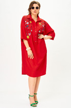 Платье прямого силуэта. Выполнена застежка на петли ипуговицы. По горловине стойка с воротником. По спинке кокетка и склада на свободу движения. Рукав рубашечного кроя с манжетом по низу. В боковых швах карманы.Перед платья декорирован дизайнерской вышивкой.