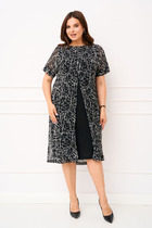 Трикотажное платье сделает Ваш образ неповторимым. А-образный силуэт придаст стройность и свободу движения. Перед платья с нагрудными вытачками из боковых швов. С левой стороны, в области бедер, есть нефункциональный карман с молнией. Горловина переда круглая. Рукав двухшовный, длинный. Спинка со средним швом. В комплект входят бусы, которые дополнят Ваш образ.