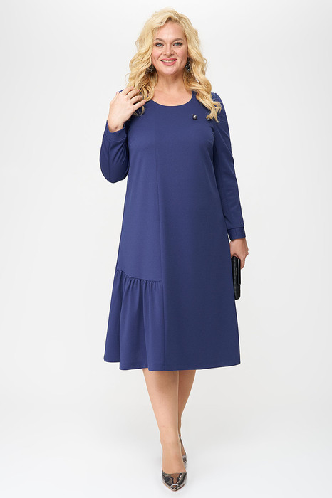 Комфортное  нарядно - повседневное  платье А-силуэта из трикотажного полотна. Круглый вырез горловины, асимметричный перед со смещенным средним швом, по низу платья вставка со сборкой. Спинка со средним швом, рукав длинный, зауженный к низу и дополненный притачной манжетой. Комфортная современная модель, платье как   для работы, так и как платье на выход  и просто для повседневного применения. Платье дополнено брошью, которая добавит изюминку в Ваш образ. Такое платье должно быть в каждом гардеробе.
