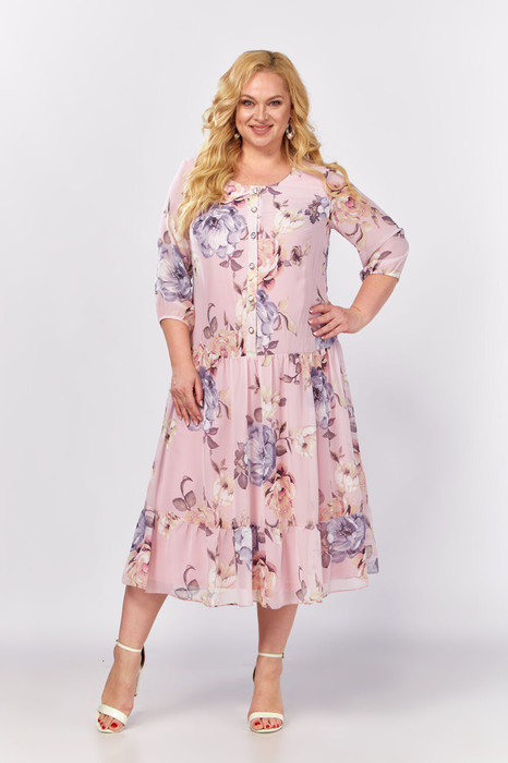 Легкое, воздушное платье из шифона на трикотажной подкладке для женщин подарит ощущение летнего бриза даже в самый знойный день. Этот элегантный наряд обязательно привлечет внимание окружающих! Нежный дизайн ткани добавляет шарм и делает его по-настоящему женственным. Крой А-силуэт нарядного изделия подходит как для повседневного образа, так и для особых случаев. Силуэт модели выделяет женственность фигуры и делает образ стильным. Платье создано для тех, кто предпочитает удобство и стиль в одном флаконе. Миди-длина платья и воланы подчеркнут грацию фигуры и добавят загадочность Вашему образу. Перед платья частично на застежке на петли и пуговицы. Рукав втачной, 3/4, по низу на резинке. Выбрав эту модель, Вы точно будете выглядеть неповторимо на любых мероприятиях!