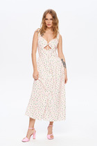 Стильное однотонное платье полуприлегающего силуэта, выполнено из плотного трикотажа. Круглый вырез горловины обработан обтачкой и дополнен металлической застежкой-молнией, длиной 21 см. Дополнительный объем платью придают заложенные по горловине переда складки. По переду платье со средним швом с отделочными строчками. В боковых швах - настрочные карманы. Рукав втачной, длиной до локтя. Спинка со средним швом. Платье без подклада и застежек.В В Длина изделия по спинке в 46 р-ре – 97 см.