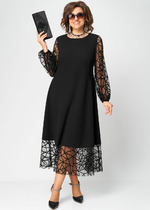 Практичное платье полуприлегающего силуэта, выполнено из трикотажного полона \"Масло\". Рукава втачные длиною 3/4 собраны на манжету. Фигурный вырез горловины, переходит в декоративную планку контрастного цвета. Платье отлично подходит для повседневной носки. Длина изделия по спинке в 48 р-ре 105 см.