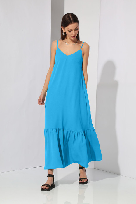 Платье женское А-образного силуэта, на бретелях, с открытой спинкой. Выполнено из ткани с содержанием вискозы, плательного ассортимента.