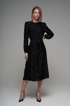 Облегающее платье с высоким разрезом из трикотажа под замшу. Детали: платье прилегающего силуэта, втачные длинные рукава, без застежки.