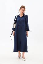 Детали: отрезная линия талии, фигурный лиф с регулируемыми завязками и оборками, застежка по переду на петли и пуговицы, юбка платья со сборкой по бокам, функциональные карманы, рукава короткие с резинкой по низу, платье на подкладке. Подкладка платья- 100% хлопок.