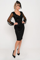 Детали: прилегающий силуэт, нагрудные вытачки, платье отрезное по талии, юбка со сборками на запах, втачной одношовный рукав, воротник-стойка.