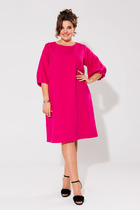 Легкое платье прямого силуэта. Округлая горловина на внутренней обтачке. Короткие цельнокроеные рукава, оканчиваются манжетами на отворотах. В среднем шве спинки расположен разрез с застежкой на пуговицу. Пояс из основного материала в комплекте. Низ ровный, без разрезов.