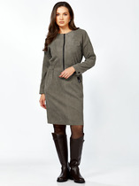 Vilatte Платье из трикотажа в широкий рубчик с разрезами D42.096 оливковый-белый