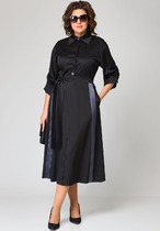 Платье женское, предназначено для повседневной носки. Платье женское полу прилегающего силуэта, длиной до середины икры. Перед с втачным поясом, верхняя часть переда с 2-мя нагрудными вытачками, нижняя часть с запахом. Спинка отрезная по линии талии с втачным поясом, верхняя часть спинки с таллиевыми вытачками. Горловина с V-образным вырезом, с запахом, без воротника. Застёжка на потайную тесьму-молнию в левом боковом шве платья. Рукав короткий одно шовный втачной с фигурным низом, 1-ной встречной складкой по центру оката. Платье без плечевых накладок. Длина спинки 116 см, длина рукава 15,5 см.