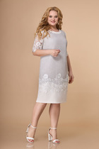 Платье женское относится к нарядной торжественной одежде. Платье женское отрезное по линии талии, расширенное к низу, длинное. Верхняя часть переда с 2-мя нагрудными вытачками, нижняя часть цельнокроеная. Верхняя часть спинки с 2-мя таллиевыми вытачками, с обработанным разрезом по головине, фиксирующимся на 1-ну навесную петлю и 1-ну пришивную пуговицу; нижняя часть спинки цельнокроеная. Горловина круглая, обточная, без воротника. Рукав втачной одно шовный, длинный. Рукав со сборкой по окату. Низ рукава собран на эластичную тесьму. Платье на подкладке. Платье без плечевых накладок. К платью прилагается съёмный пояс. Длина спинки платья 137 см, длина рукава 55 см.