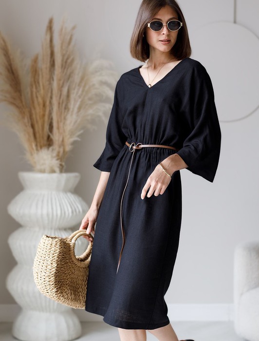 Состав: 70%Вис 30%ЛенПлатье выполнено изо льна с вискозой. Модель с V-вырезом и с цельнокроеным рукавом в стиле кимоно дополнено вшитым поясом из эластичной резинки. В комплект входит ремешок из эко-замши с золотистым кольцом. По бокам два кармана. Лён в составе обеспечивает прочность и воздухопроницаемость, вискоза эластичность и гладкость ткани. Благодаря такому сочетанию изделие хорошо драпируется, меньше мнется и сохраняет форму в течении долгого времени.