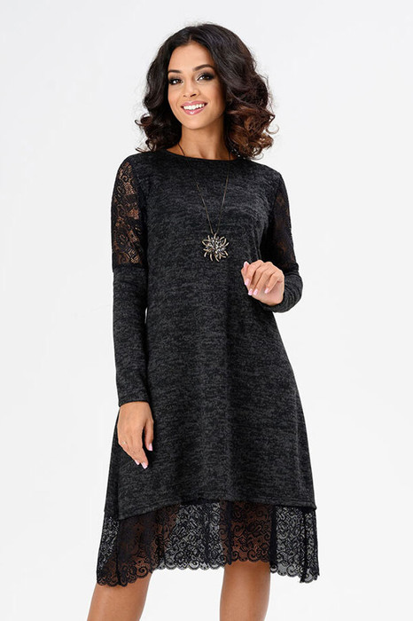 Красивое платье из мягкой трикотажной ткани, модно декорированное гипюровыми кружевными вставками по плечам и низу изделия. Свободный силуэт - универсальная модель для Вашего гардероба!