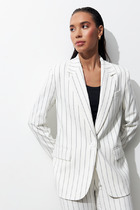Платье женское из гладкокрашеного тканого полотна, свободное, слегка расширенное к низу, с глубоким V-образным вырезом горловины, обработанным внутренней обтачкой, без рукавов, с вытачками в области груди. Перед состоит из двух частей, в шве соединения деталей по центру длинный разрез.