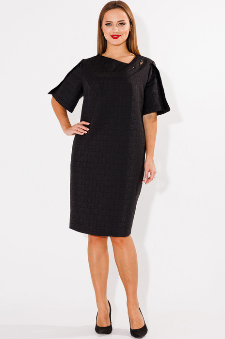 Идеальный вариант для работы в офисе, прогулок и повседневной носки — классическое черное платье-футляр.  Идеально для торжественных выходов. Полуприлегающий силуэт. Асимметричный вырез горловины. Ткань достаточной плотности за счёт своей фактуры.