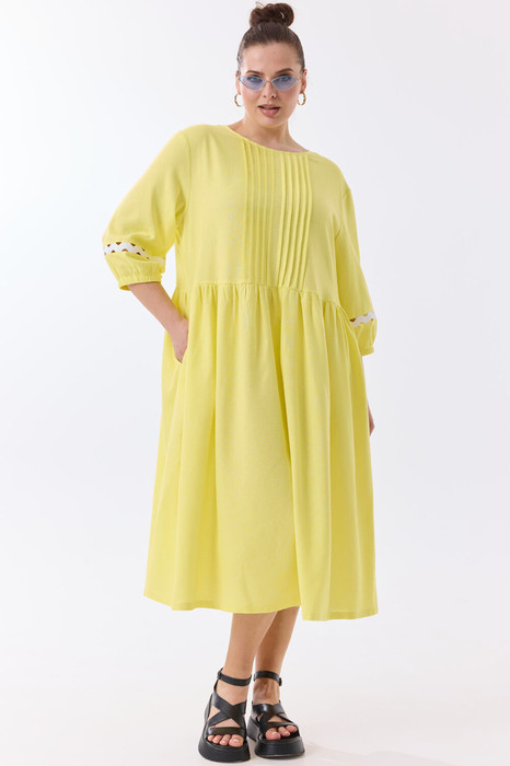Выполнено из смесового льна. Углубленная горловина, по переду защипы, рукав спущенный, свободный, низ на резинке. В боковых  швах  функциональные карманы.