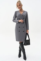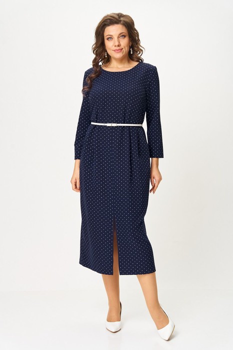 Платье женское полуприлегающего силуэта с втачным рукавом. Перед платья с горизонтальным швом по талии. Верхняя часть с вытачками по линии груди, нижняя часть со складками в области талии и карманами что обеспечивает прекрасную посадку и подчеркивает фигуру. Разрез по переду платья добавляет нотку игривости и удобства. В комплекте съемный ремень.