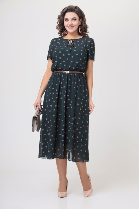 Платье Swallow 536 зеленый+бежевый горох