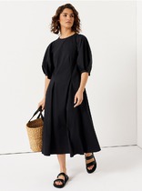 Платье полуприлегающего силуэта из эластичной хлопковой ткани. Платье отрезное по линии талии. По переду лифа расположены рельефные швы. Спинка лифа с рельефными швами и средним швом. Юбка клешеная с карманами в боковых швах. По спинке предусмотрена потайная молния.