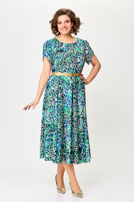Платье Swallow 725 бирюзово-бежевый принт