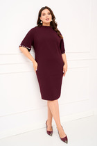 Платье из мягкой трикотажной ткани, прилегающего силуэта длины «миди». Горловина круглая, обработана притачной планкой, рукав втачной, длинный.
