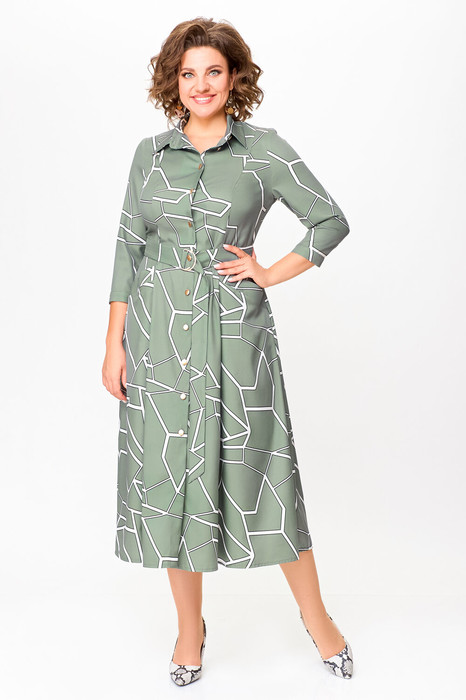 Платье Swallow 784.1 шалфей+принт белая геометрия