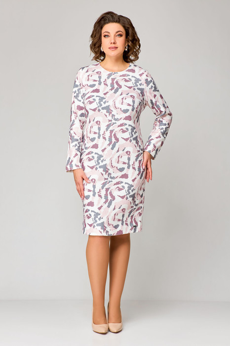 Платье Swallow 786.1 молоччный+серо-розовый принт