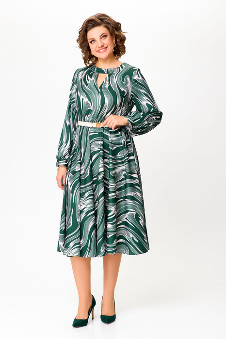 Платье Swallow 807 изумруд/бежевые разводы
