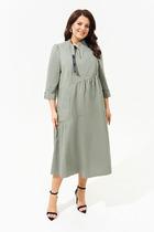 Платье женское из мягкой вискозной ткани, Х-образного  силуэта с полуприлегающим лифом. Платье отрезное по линии талии. По переду лифа отрезные рельефы, по спинке талиевые выточки. Юбка расклешённая из шести клиньев со встречными складками по линии талии. В среднем шве спинки предусмотрена молния. Рукав втачной покроя тюльпан, длина рукава 15 см. В комплекте ремень с декоративной пряжкой. В зависимости от партии пряжка и цвет ремня могут отличаться.