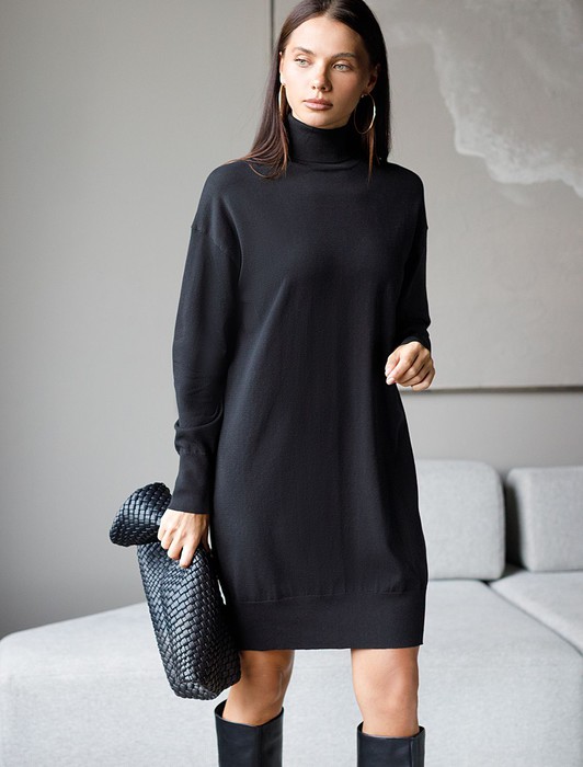 Состав: 82%Хлопок 18%ПА Плотность: 12 GG Параметры модели на первом фото: Рост 170, бюст 83, талия 64, бедра 88 Размер товара на первом фото: 42Платье тонкой вязки выполнено из хлопка. Лаконичная модель с высоким воротом как у водолазки дополнена манжетами с золотистыми пуговицами. Изделие свободно сидит по фигуре и не сковывает движений. Мягкая пряжа очень приятная к телу не колется и сохраняет тепло при этом не перегревая.