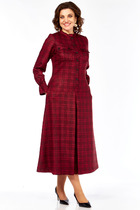 Платье женское с декоративной симметричной вышивкой по полочкам, длиной за колено, трапециевидного свободного силуэта, отрезное по линии талии, со спущенными цельнокроеными рукавами.