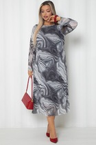Платье женское полуприлегающего силуэта, отрезное по линии талии с притачным поясом, выполнено из костюмно-плательной ткани "лащенка". Перед и спинка на трикотажной, отлетной по низу, подкладке. Горловина, низа рукавов декорированы отделочной тесьмой, что придает платью нарядный вид.