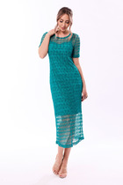Комфортное платье свободного кроя из трикотажного полотна. Округлая горловина на внутренней обтачке. Цельнокроеный рукав оканчивается притачной манжетой с отворотом. По переду расположены функциональные карманы. Низ ровный, сзади шлица.