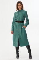 Элегантное платье прямого силуэта из костюмной ткани. Горловина с английским воротником. По переду выполнена двубортная застежка на петли и пуговицы. Длинный втачной рукав. Модель дополнена функциональными карманами в боковых швах. Низ ровный, без разрезов. Пояс из основной ткани в комплекте. Отличный вариант для офиса.