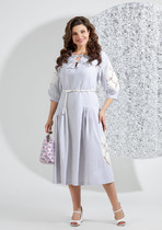 Если Вы ищете идеальное сочетание стиля и комфорта, вот идеальный выбор. Мы специально подобрали качественную и тактильно приятную ткань, которая хорошо держит свою форму, создавая ощущение легкости и свободы движения. Платье свободного силуэта, слегка заужается к низу, с округлой формой горловины, линия плеча спущенная. Главная интрига кроется в декоративной складке в подрезе по переду. Это тщательно продуманный декоративный элемент. Эта складка — свидетельство высокого искусства кройки; она добавляет глубину и динамику лаконичному фасону, создавая иллюзию движения даже в неподвижности. Спинка в платье со средним швом. Рукав в платье втачной, длиной 7/8. Но кульминацией образа становится отдельный декоративный элемент. Шарф, идущий в комплекте, драпируется на шее, являясь частью наряда. Он создаёт завершающий образ.Вместе с платьем они создают диалог текстуры и формы, тем самым завершая образ. Гладкое, платье служит идеальным холстом для струящейся драпировки шарфа. Длина платья 116 см (р.52-56), 117 см (р.58-62), длина рукава 31 см (р.52-56), 30 см (р.58-62).
