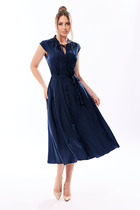 Безумно красивое и элегантное платье в модном оттенке «сливочного масла» мягко обволакивает фигуру, создавая тем самым шикарный образ. Его стиль, утончённость делает женщину поистине роскошной. Платье идеально подойдёт как для повседневной носки, так и для торжественных выходов, подчеркивает достоинства фигуры и успешно скрывает все недостатки. Платье прилегающего силуэта с округлой горловиной с отделкой в виде декоративной отделочной тесьмы. По переду платья нагрудные вытачки, отделочные клапана карманов с декоративной отделкой в виде тесьмы. По спинке застёжка на декоративную тесьму-молнию. Рукав в платье втачной, длинный. Платье на подкладке. Длина платья 111 см (р 48-52), 111,5 см (р 54-58), длина рукава 61 см.