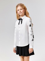 Белая нарядная текстильная блузка прямого силуэта, приталенная для девочки подростка. Школьная блузка на кнопках хорошо держит форму, комфортна в носке и проста в уходе. Высокое содержание хлопка. Рубашка в школу с длинным рукавом и интересным дизайном разнообразит повседневные школьные образы.